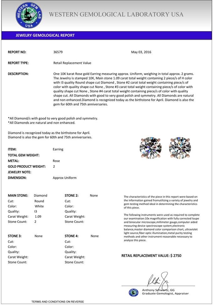 total approx. 2 grams. The Jewelry is stamped 10K, Main stone 1.09 carat total weight containing 2 piece/s of H color with