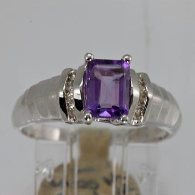 Main Stone: Amethyst ; Diamond CTW: 0.1 ; Gemsonte CTW: 0.99 : Main Stone Treatment: Not Enhanced ; Exact Total Weight: 1.09 ; Metal: White Gold ; Ring Size: 7 ; Main Stone Color: Purple ; Metal Purity: 14K (Soild, Unplated) ; Condition: New