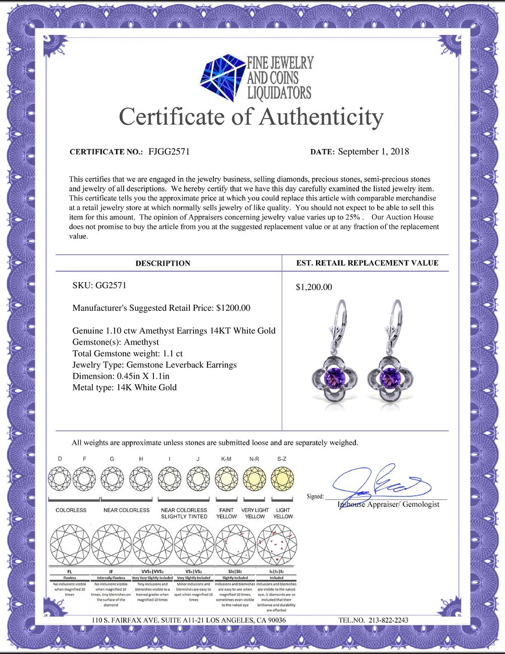 REF-37H7X - SKU: GG2571 ---- Genuine 1.10 ctw Amethyst Earrings 14KT White Gold