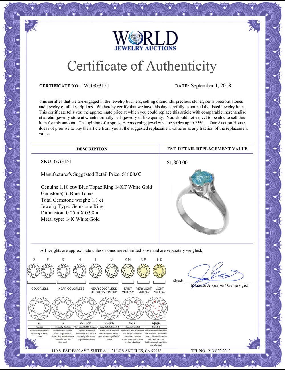 REF-57R3P - SKU: GG3151 ---- Genuine 1.10 ctw Blue Topaz Ring 14KT White Gold