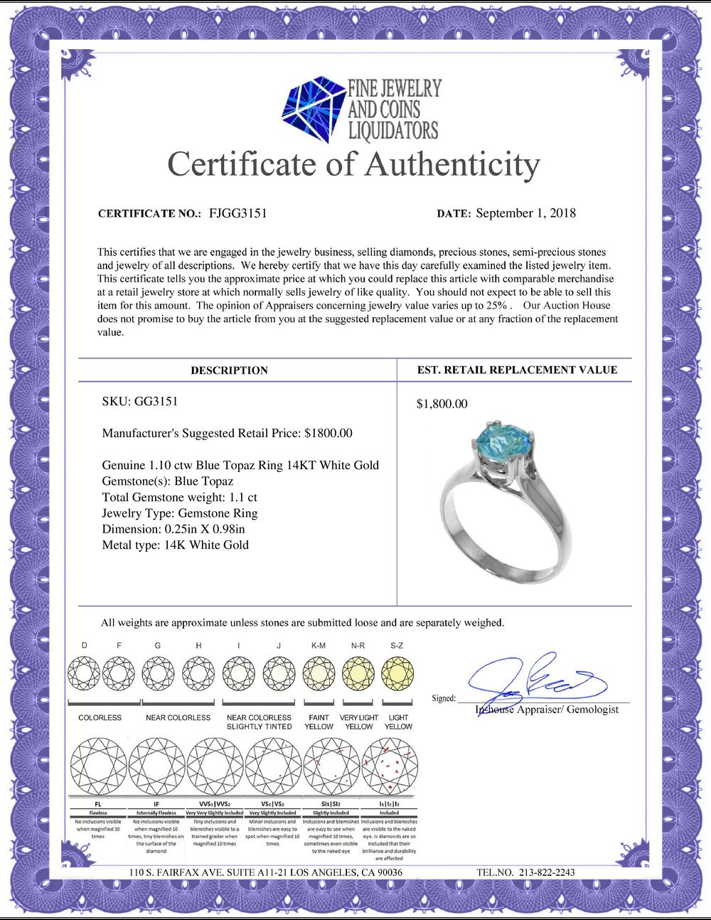 All Gia and EGL Diamonds are subject to availability due to consignors’ terms with us.