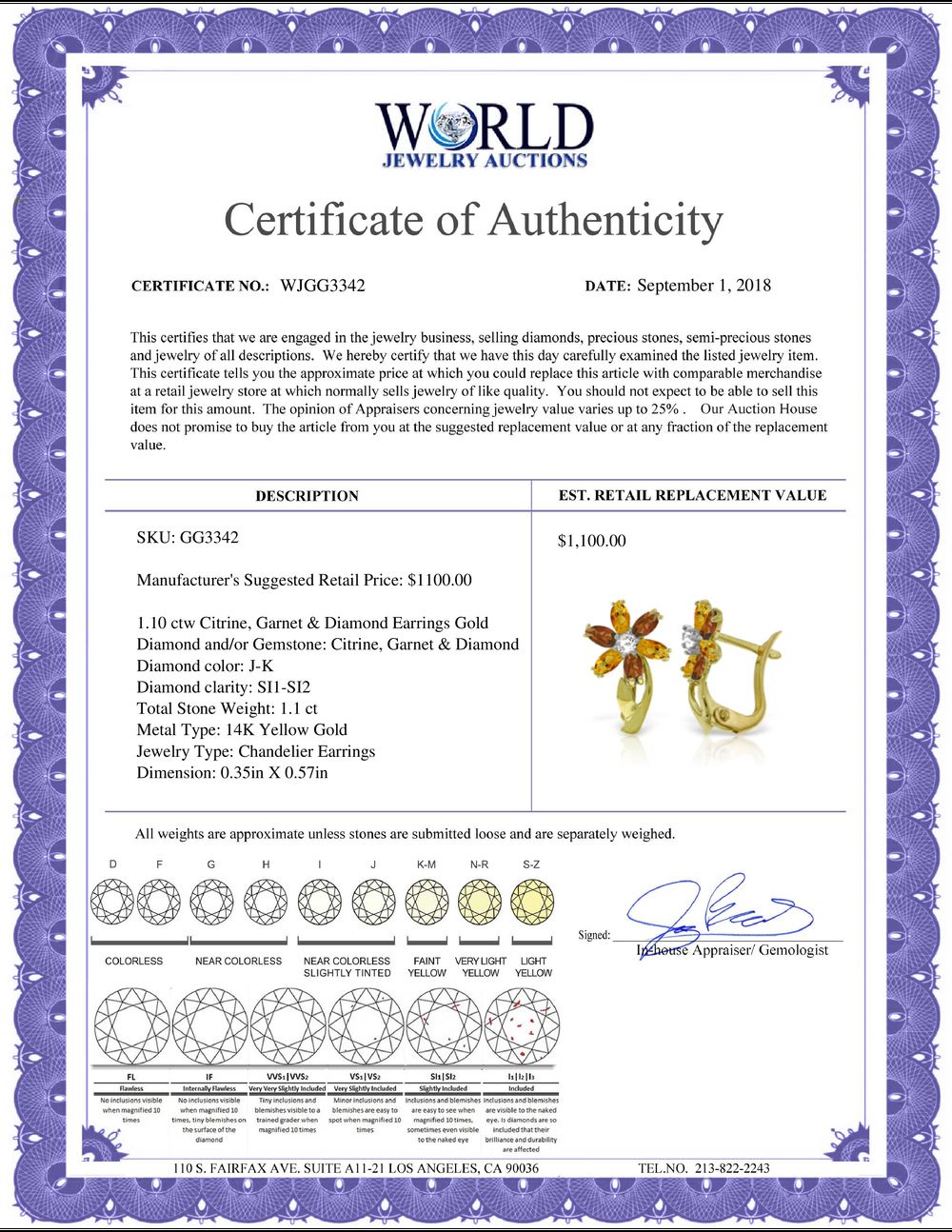 REF-36P3H - SKU: GG3342 ---- Genuine 1.10 ctw Citrine, Garnet & Diamond Earrings 14KT Yellow Gold