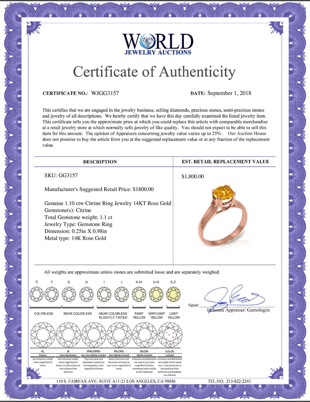 SKU: GG3157 ---- Genuine 1.10 ctw Citrine Ring 14KT Rose Gold