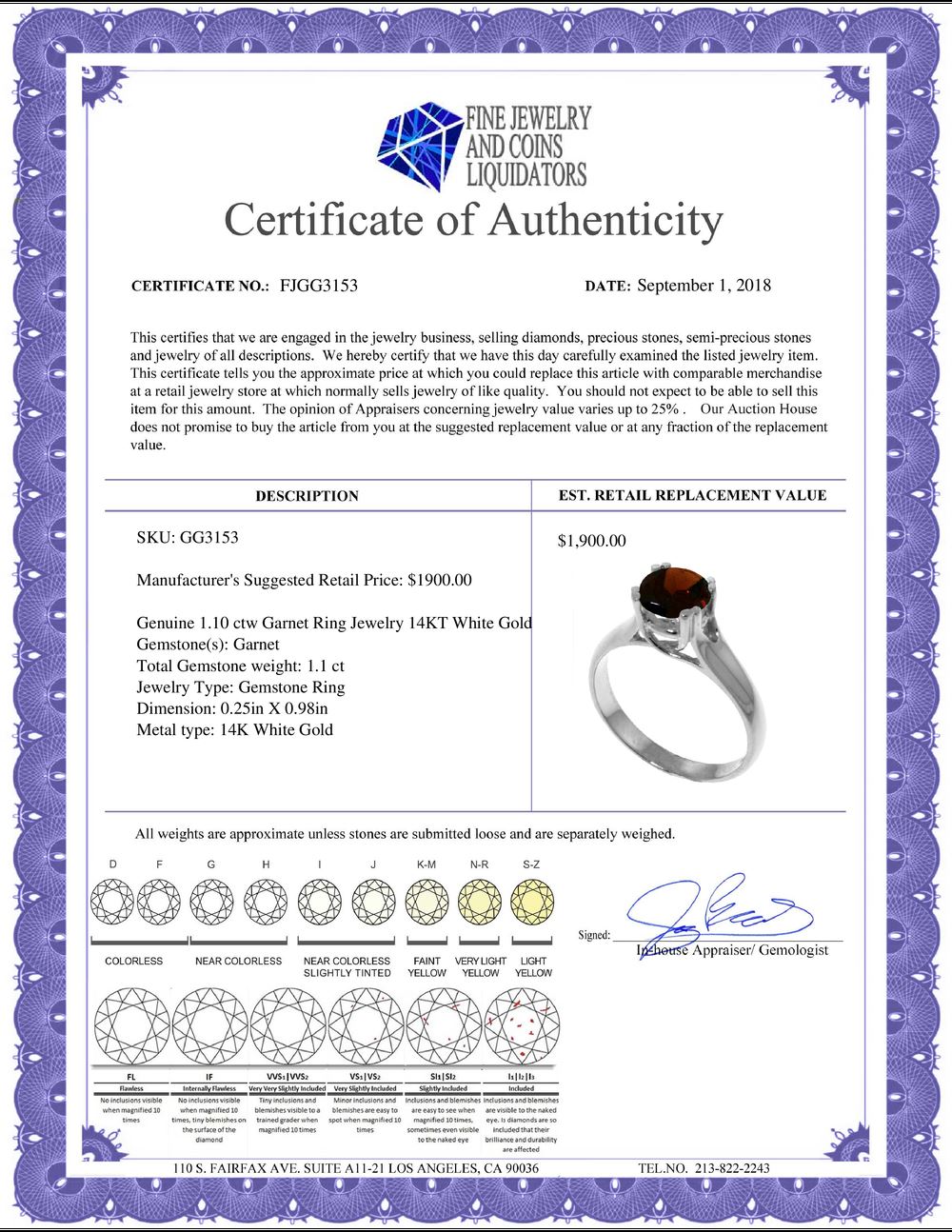 REF-63M3T - SKU: GG3153 ---- Genuine 1.10 ctw Garnet Ring 14KT White Gold