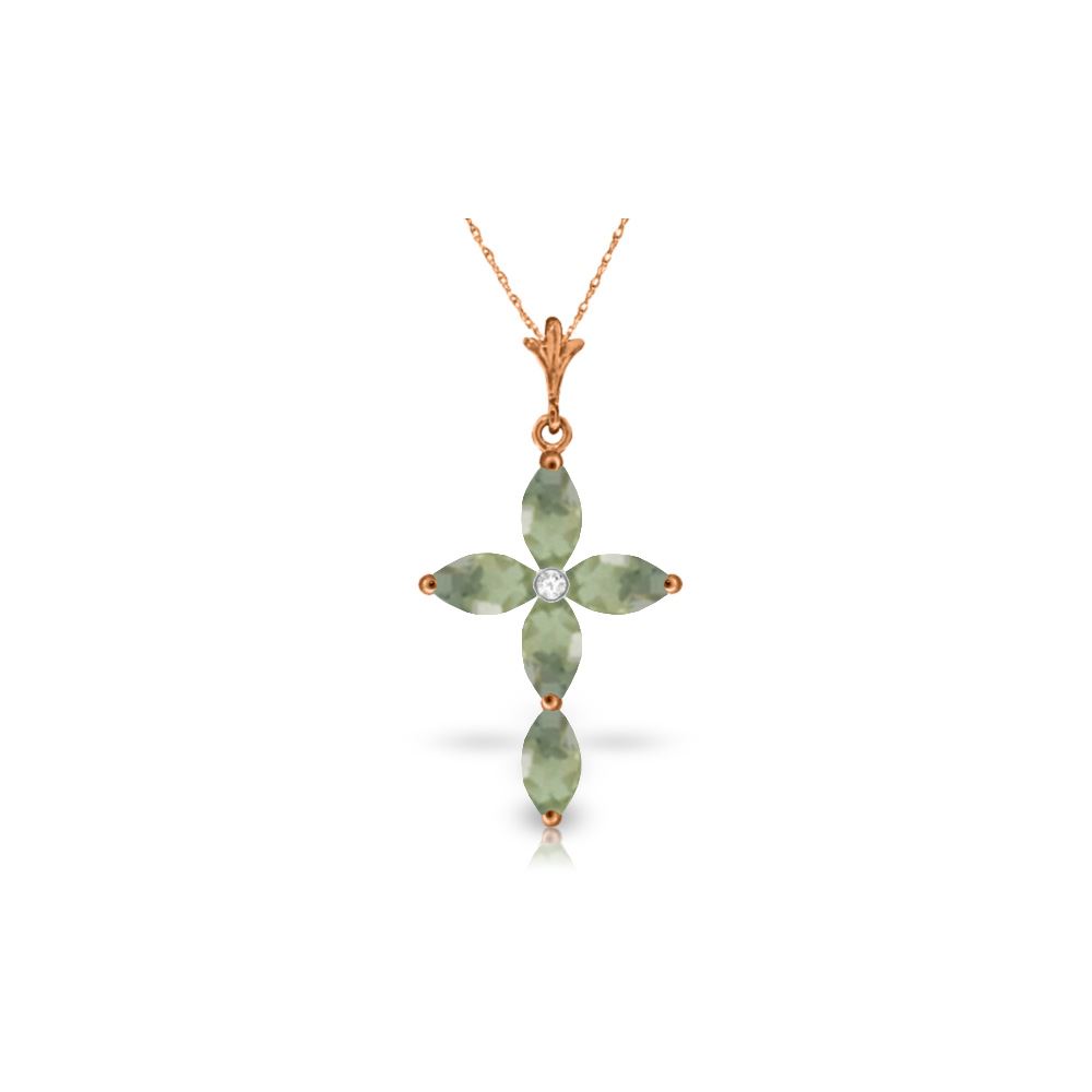 Genuine 14K Rose Gold 1.10 ctw Green Amethyst & Diamond Necklace