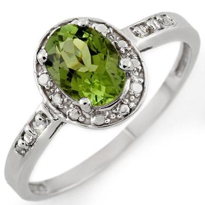 Diamond: 6 Round cut @ 0.10 ctw Clarity: SI-I Color: H-K Gemstone: Natural Tourmaline Gemstone color: Green Gemstone quality: Good-to-Very Good Gemstone Cut & Weight: 1 Oval cut @ 1.0 ctw Metal Purity & Color : 10K Gold-White Gold weight: 2.05 grams Ring size (US): 6.75 Dimension: Approx. 1/4" x 5/8" Consignor: World Jewelry Outlet Delivery: Within 10 business days