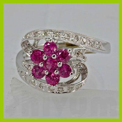 Diamond Count: 16RD ; Diamond Weight: 0.15 ; Gemstone Weight: 0.98 ; Total Carat Weight: 1.13 ; Gemsotne: Ruby ; Metal Purity: 14KT ; Metal: White Gold ; Ring Size: 7