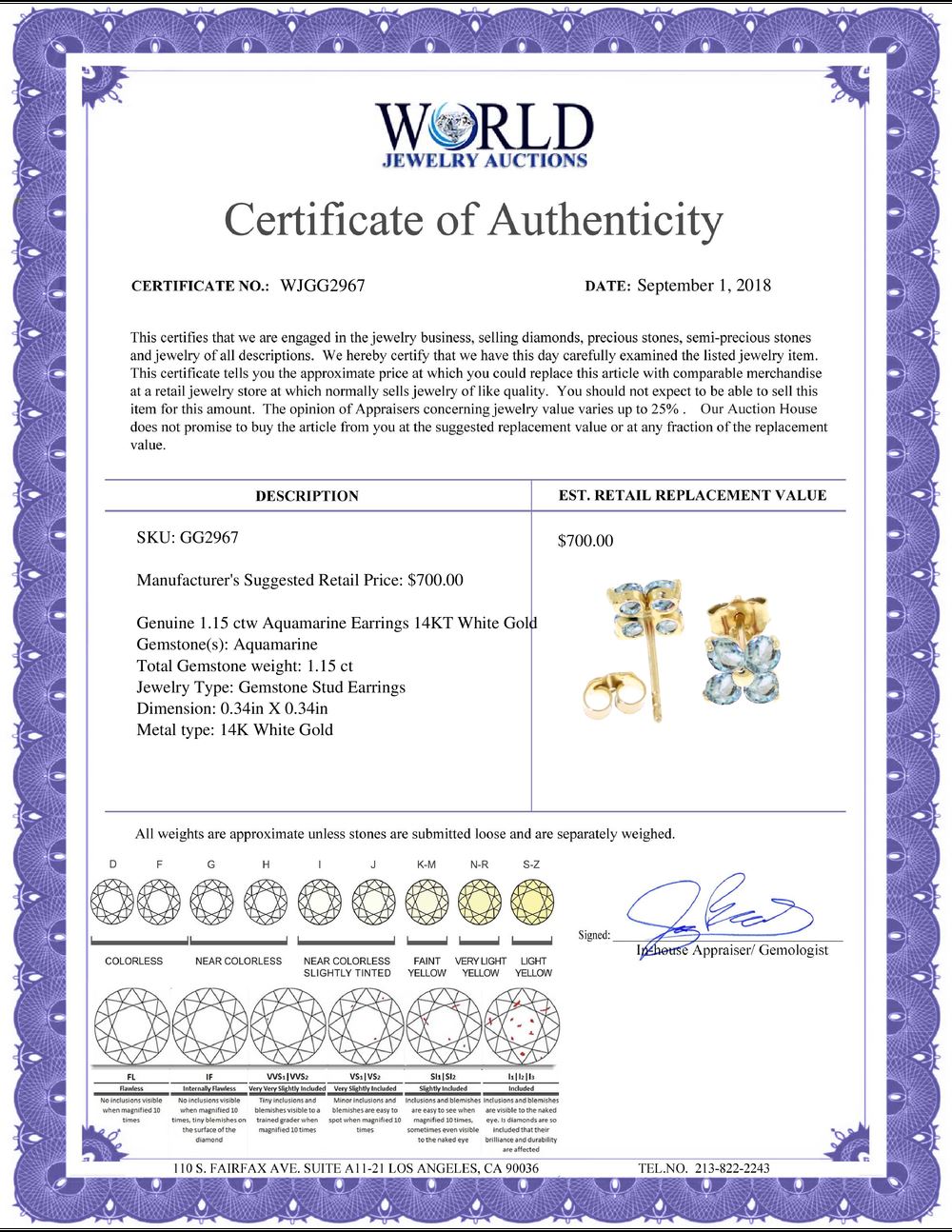REF-22X2M - SKU: GG2967 ---- Genuine 1.15 ctw Aquamarine Earrings 14KT Rose Gold