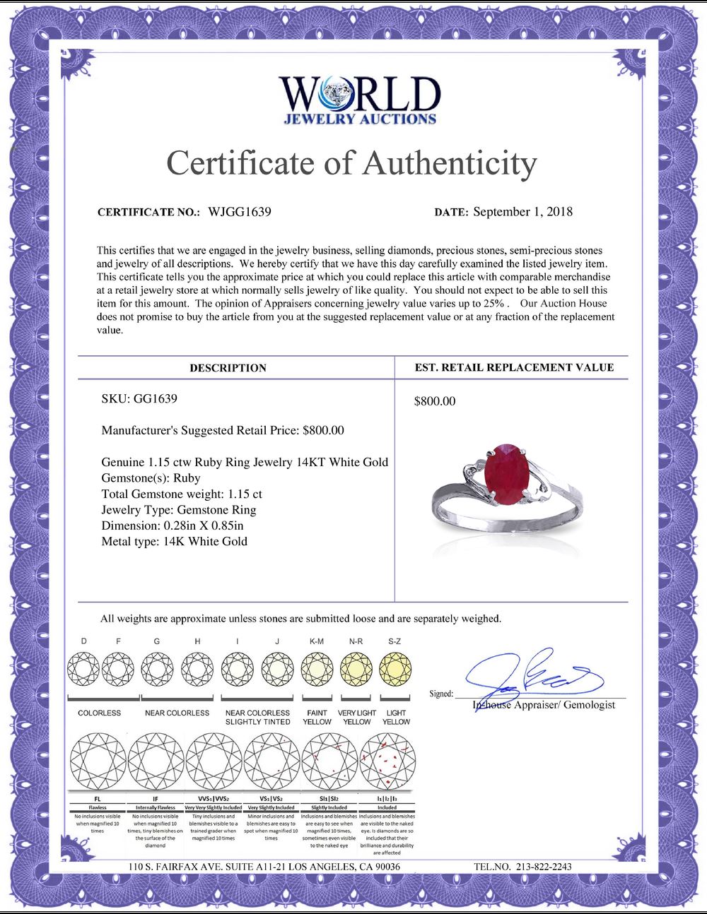 REF-24F5Z - SKU: GG1639 ---- Genuine 1.15 ctw Ruby Ring 14KT White Gold