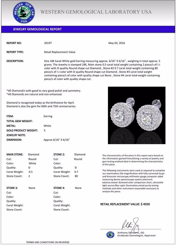 total approx. 5 grams. The Jewelry is stamped 18K, Main stone 0.5 carat total weight containing 2 piece/s of I-J color with