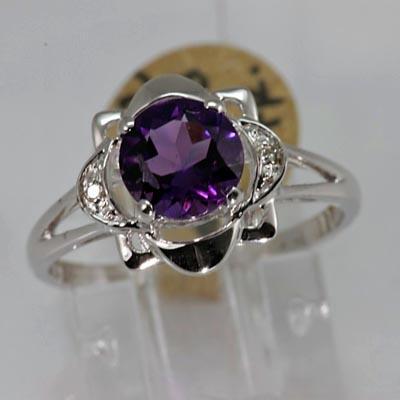 Main Stone: Amethyst ; Diamond CTW: 0.02 ; Gemsonte CTW: 1.18 : Main Stone Treatment: Not Enhanced ; Exact Total Weight: 1.2 ; Metal: White Gold ; Ring Size: 7 ; Main Stone Color: Purple ; Metal Purity: 14K (Soild, Unplated) ; Condition: New