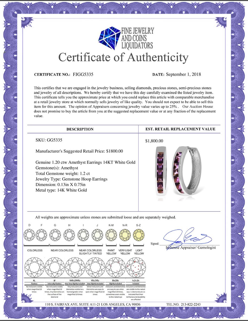 REF-56R7P - SKU: GG5335 ---- Genuine 1.20 ctw Amethyst Earrings 14KT White Gold