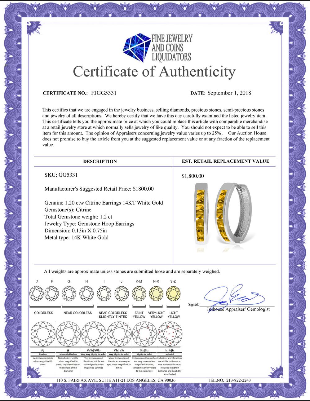 REF-56A7K - SKU: GG5331 ---- Genuine 1.20 ctw Citrine Earrings 14KT White Gold