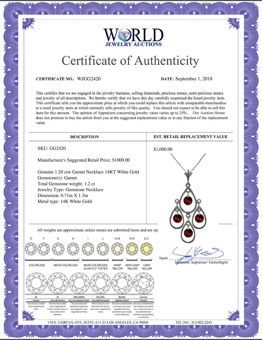 REF-30Z7N - SKU: GG2420 ---- Genuine 1.20 ctw Garnet Necklace 14KT Rose Gold