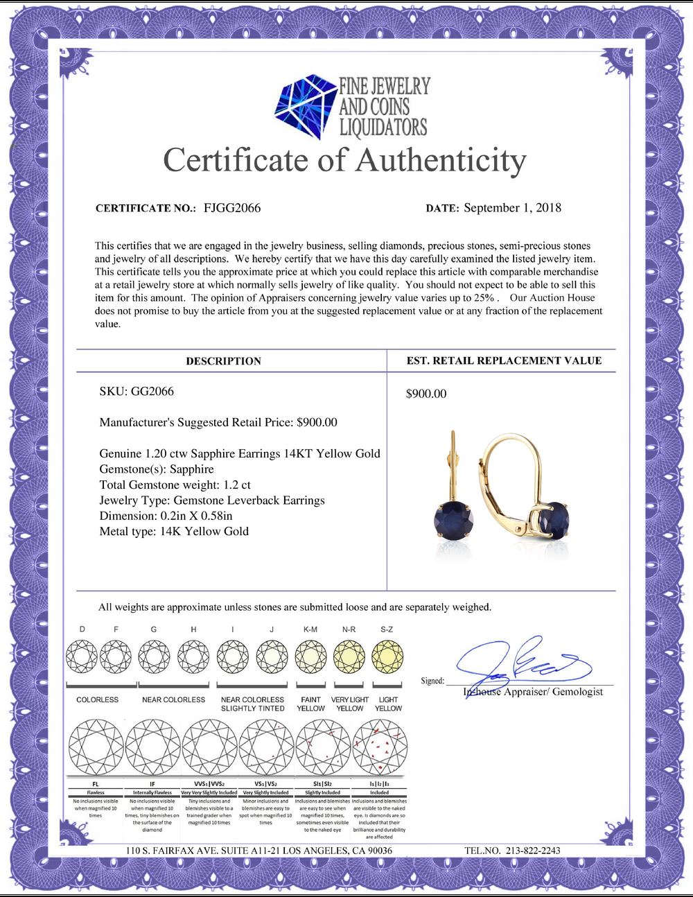 Genuine 14K Yellow Gold 1.2 ctw Sapphire Earrings
