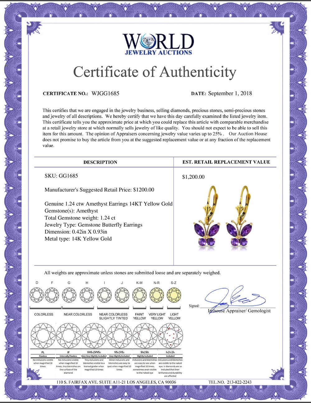 REF-38A2K - SKU: GG1685 ---- Genuine 1.24 ctw Amethyst Earrings 14KT Yellow Gold