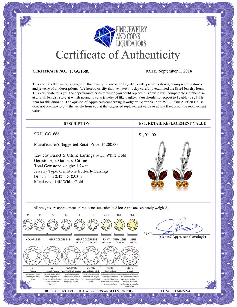 REF-38X2M - SKU: GG1686 ---- Genuine 1.24 ctw Garnet & Citrine Earrings 14KT White Gold