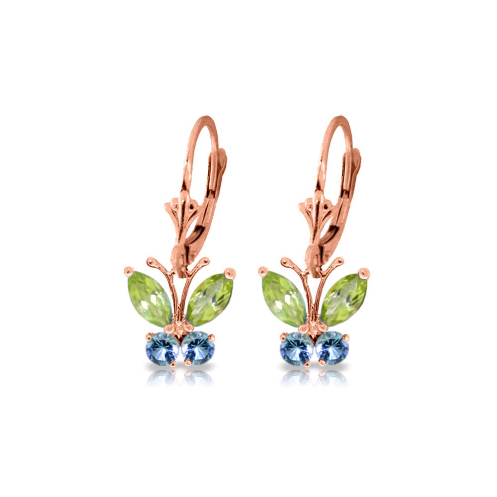 Genuine 14K Rose Gold 1.24 ctw Peridot & Blue Topaz Earrings