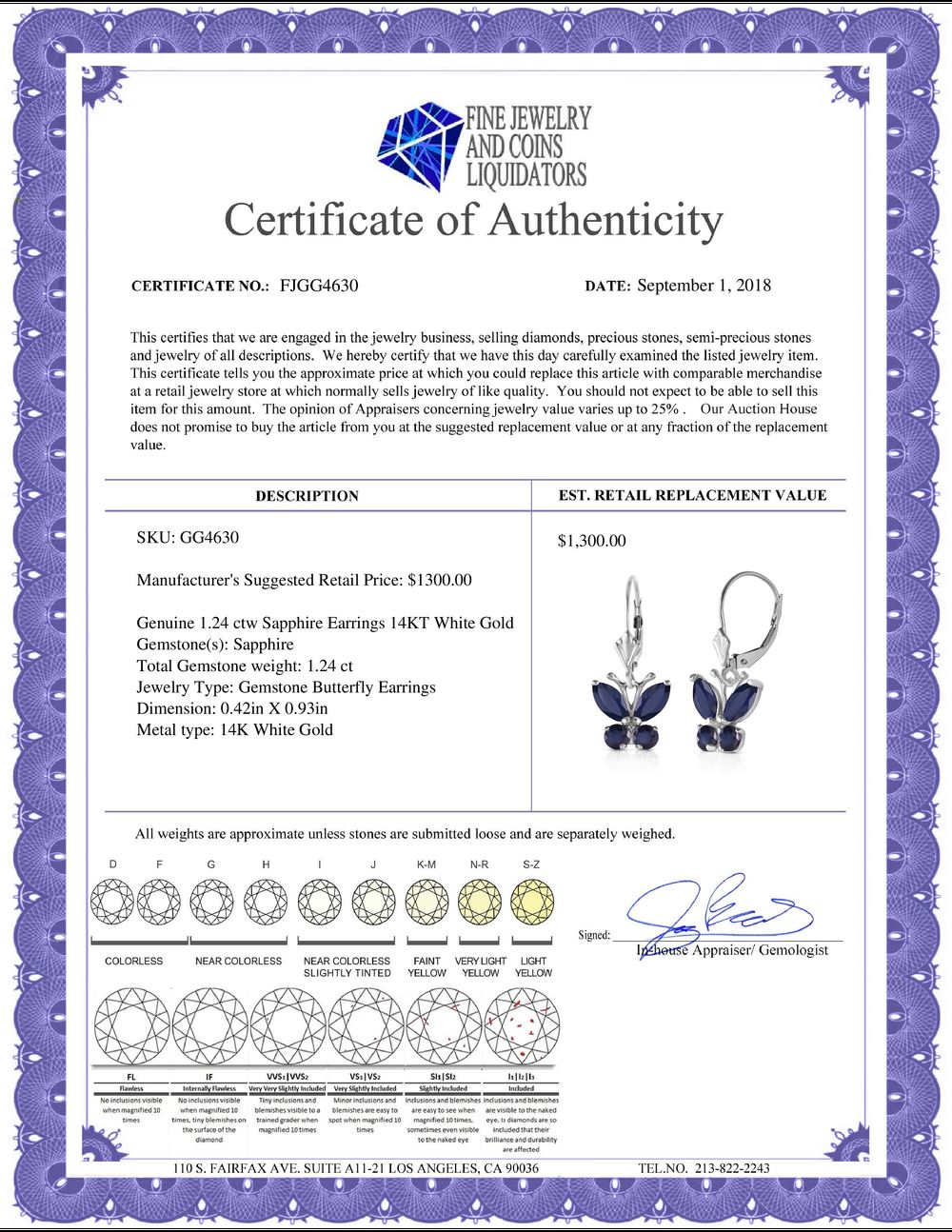 REF-42Z9N - SKU: GG4630 ---- Genuine 1.24 ctw Sapphire Earrings 14KT Rose Gold