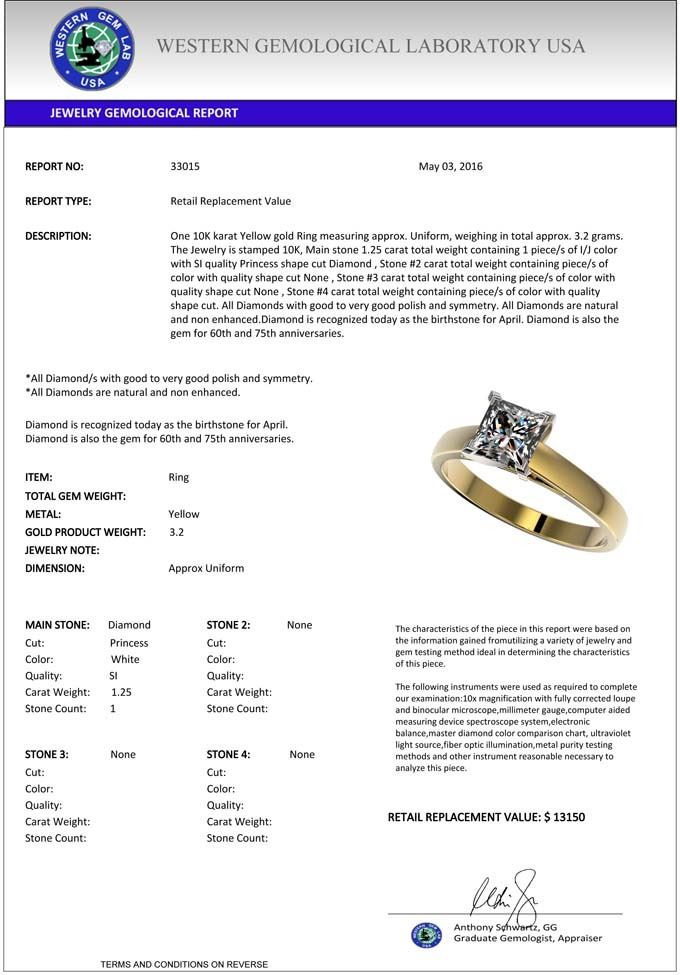 total approx. 3.2 grams. The Jewelry is stamped 10K, Main stone 1.25 carat total weight containing 1 piece/s of I/J color with