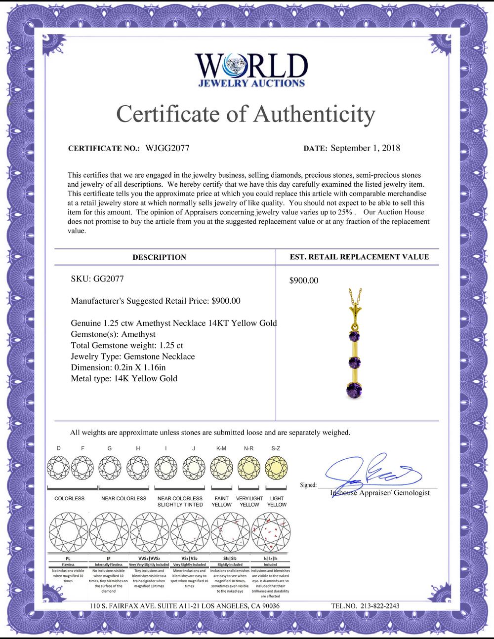 REF-29P3H - SKU: GG2077 ---- Genuine 1.25 ctw Amethyst Necklace 14KT Yellow Gold