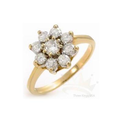 Gemstone: Diamond ; Diamond Count: 9 RD ; Diamond Weight: 1.25; Clarity: SI1-SI2 H-J; Gemstone Weight: 0; Metal Purity: 14K; Metal: Yellow-Gold ; Gold Weight (g) approx: 4; Ring Size 6; Dimension: Approx. Top Dimension: 10mm x 10mm