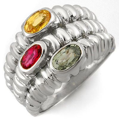 Genuine 1.25 ctw Multi-Sapphire Ring 10K White Gold - Retails for $1330 ---- Gemstone: Natural Sapphire----Gemstone color: Multi-color----Gemstone quality: Good-to-Very Good----Gemstone Cut & Weight: 3 Oval cut @ 1.25 ctw----Metal Purity & Color : 10K Gold-White----Gold weight: 6.75 grams----Ring size (US): 6----Dimension: Approx. 7/16 x 3/8--------Shipping: Within 15 business days