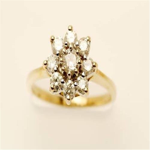 Accent stone: 9 Diamond Diamond Color: G-I Diamond Clarity: SI1-I1 Approx. weight 1.25 ctw