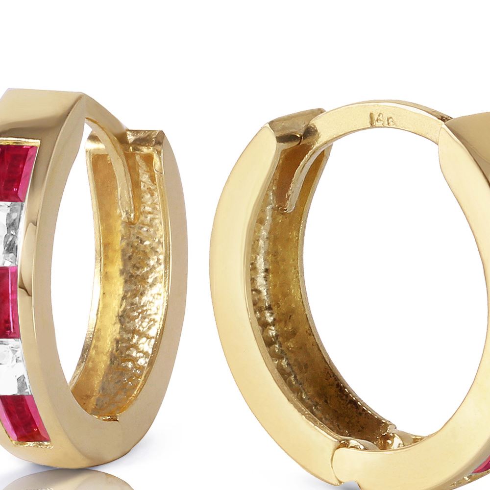 Genuine 14K Yellow Gold 1.26 ctw Ruby & White Topaz Earrings
