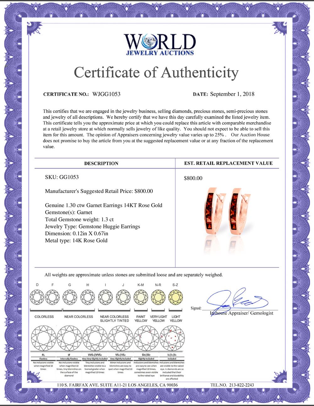 REF-25Z3N - SKU: GG1053 ---- Genuine 1.30 ctw Garnet Earrings 14KT Rose Gold