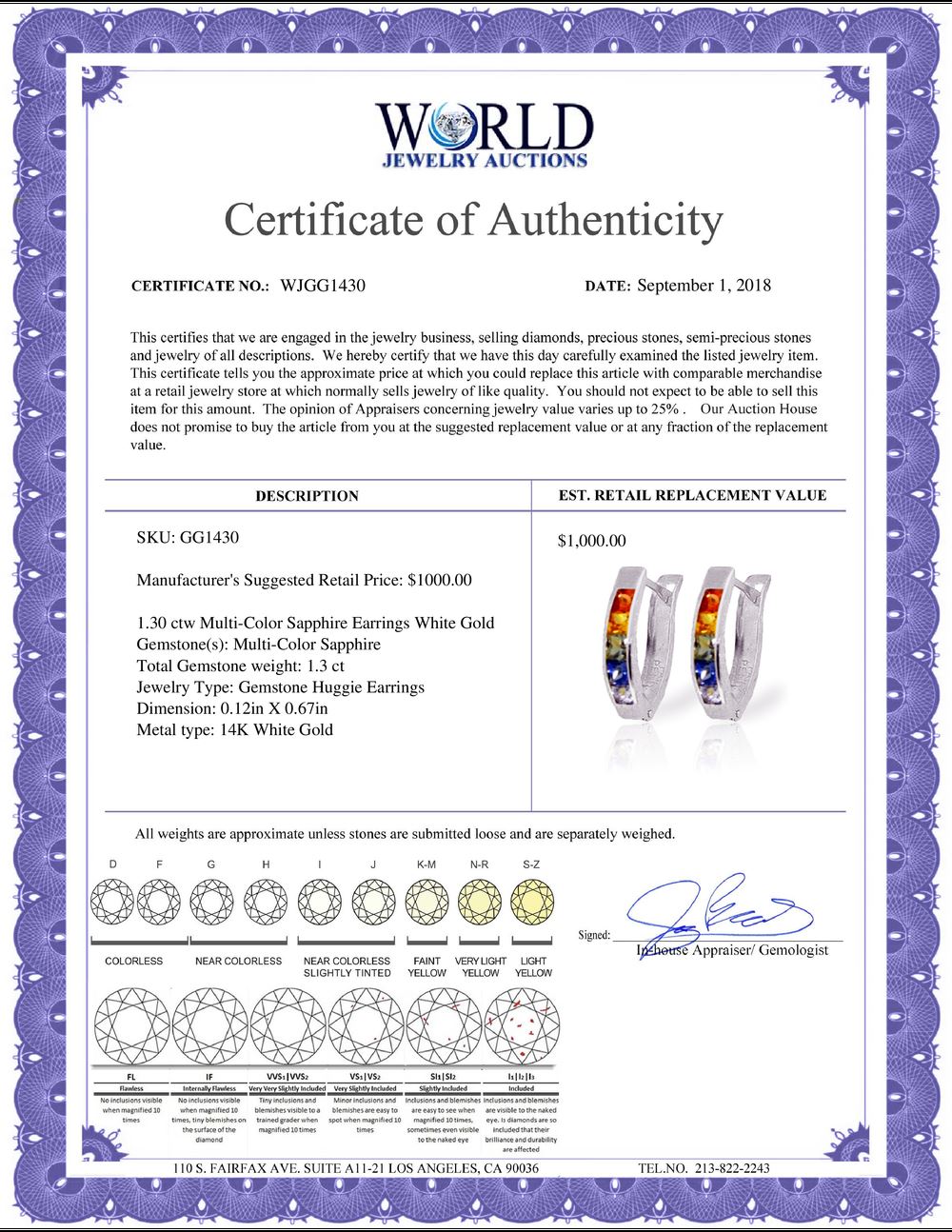 REF-30K9V - SKU: GG1430 ---- Genuine 1.30 ctw Multi-Color Sapphire Earrings 14KT White Gold