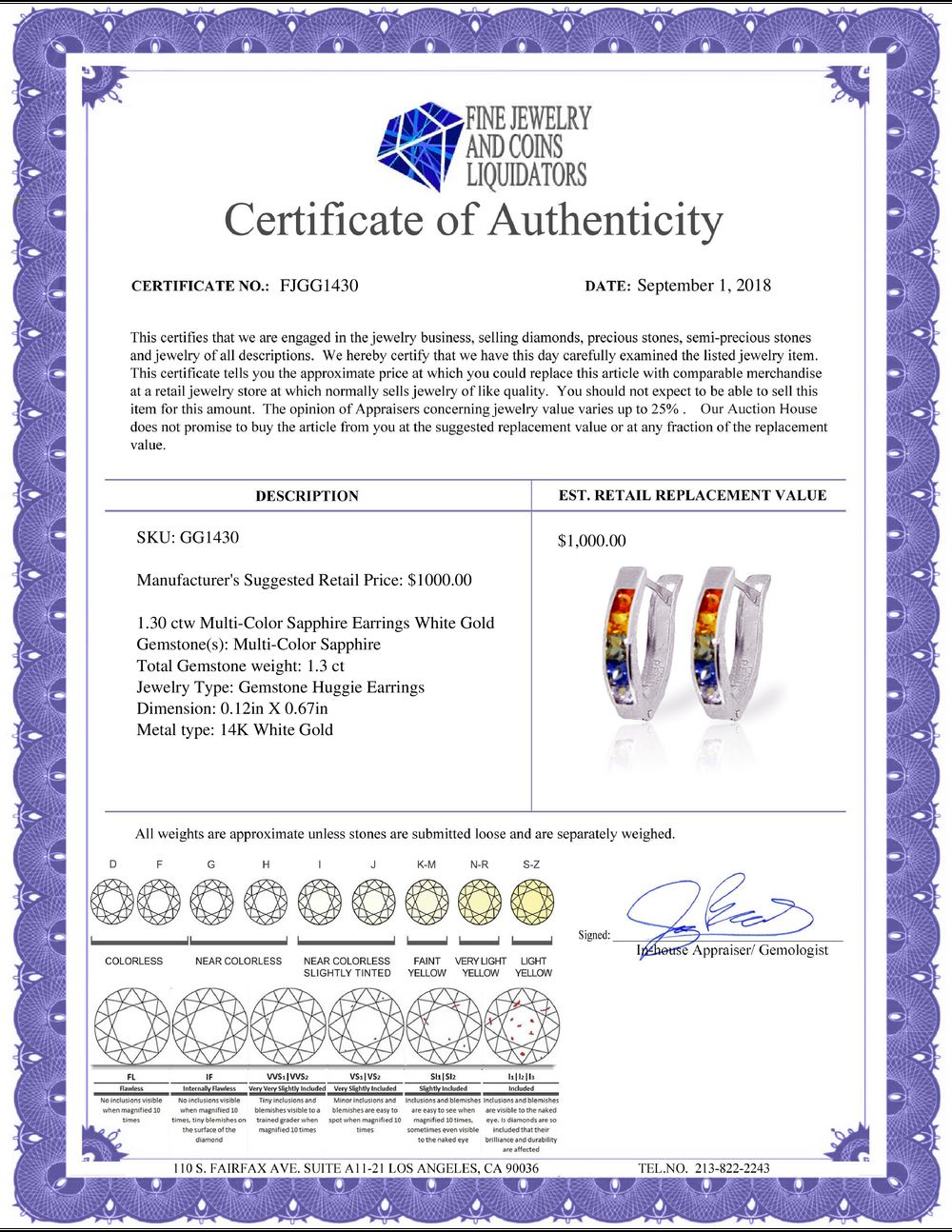 REF-30K9V - SKU: GG1430 ---- Genuine 1.30 ctw Multi-Color Sapphire Earrings 14KT White Gold