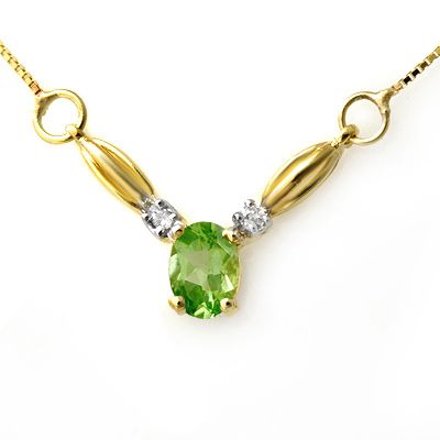 Genuine 1.30 ctw Peridot & Diamond Necklace Yellow Gold * MSRP $560 ---- Diamond: 2 Round cut @ 0.05 ctw---- Clarity: SI-I---- Color: H-K----Gemstone: Natural Peridot----Gemstone color: Green----Gemstone quality: Good-to-Very Good----Gemstone Cut & Weight: 1 Oval cut @ 1.25 ctw----Metal Purity & Color : 10K Gold-Yellow----Gold weight: 2.25 grams----Dimension: Approx. 1/4 x 1/4-------Shipping: Within 15 business days