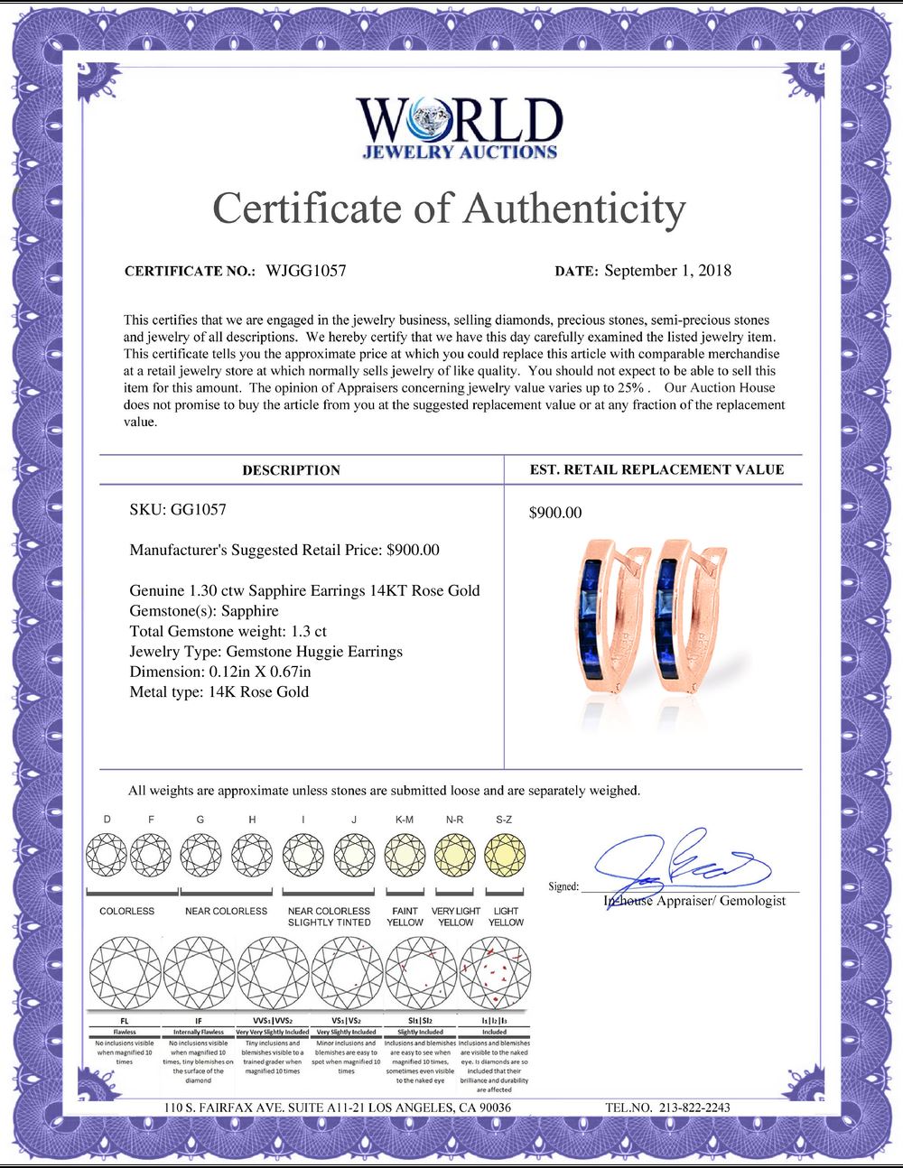 REF-28N2R - SKU: GG1057 ---- Genuine 1.30 ctw Sapphire Earrings 14KT Rose Gold