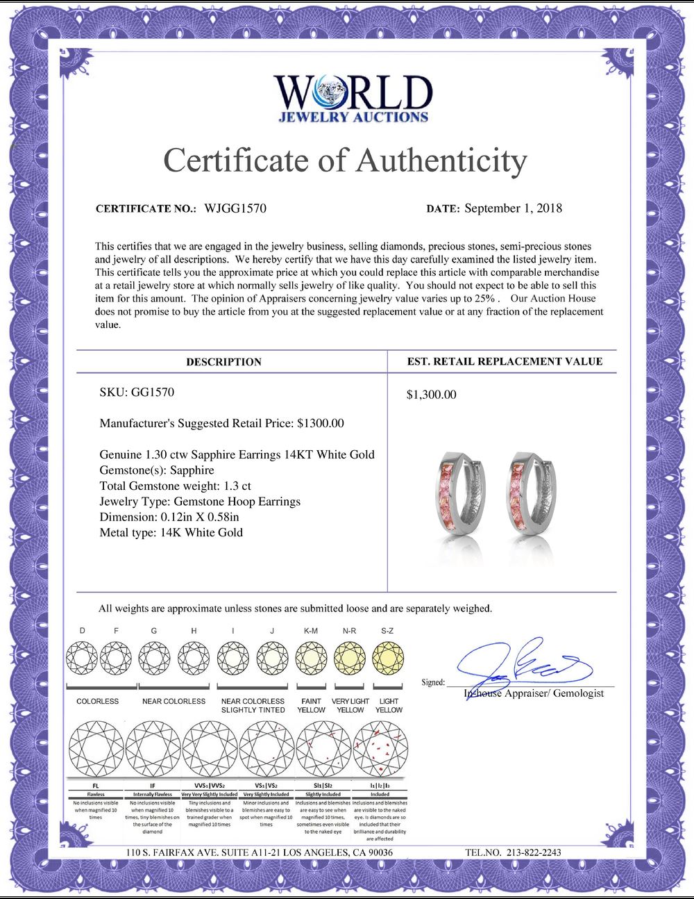 REF-42P6H - SKU: GG1570 ---- Genuine 1.30 ctw Sapphire Earrings 14KT Rose Gold