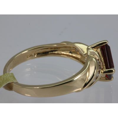 Genuine 1.33 ctw Garnet Ring 14KT Yellow Gold **|**|** Main Stone: Garnet ; Carat Weight: 1.33ctw ; Gold Carat:14KT; Metal: Yellow Gold ; Ring Size: 7 ; Diamond Weight: 0.08 ; Gemstone Carat Weight: 1.25; Cut: EMERALD ; Availability: 3-10 Business days, ready to ship, with certification of appraisal will take 2 weeks. ; MSRP: $679