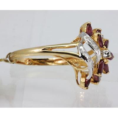 Gemstone: Ruby ; Gemstone Weight: 1.27 ; Diamond Count: 9RD ; Diamond Weight: 0.07; Metal Purity: 14KT ; Metal: Yellow Gold ; Ring Size: 6.5