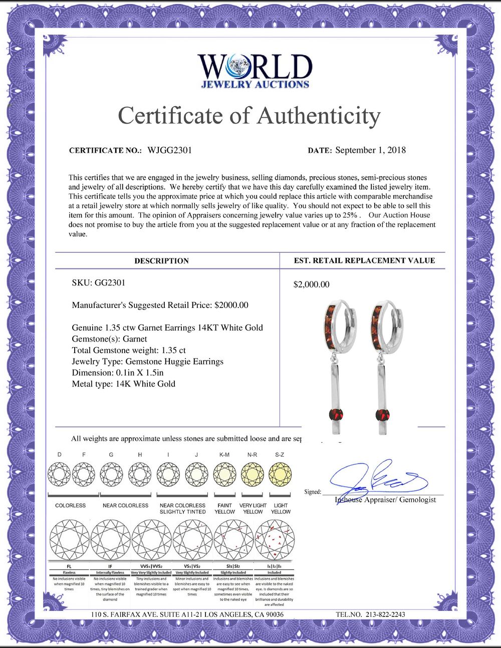 REF-66P2H - SKU: GG2301 ---- Genuine 1.35 ctw Garnet Earrings 14KT White Gold