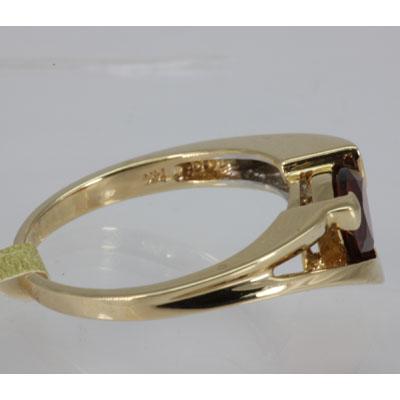 Main Stone: Garnet ; Carat Weight: 1.35ctw ; Gold Carat:14KT; Metal: Yellow Gold ; Ring Size: 7.5 ; Diamond Count: 5RD ; Diamond Weight: 0.09 ; Gemstone Carat Weight: 1.26; Cut: Triangle
