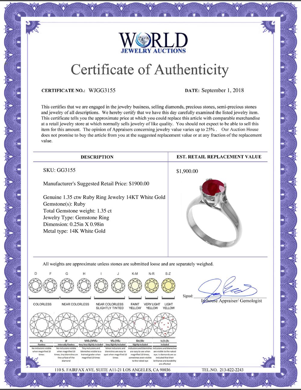 REF-61Z2N - SKU: GG3155 ---- Genuine 1.35 ctw Ruby Ring 14KT White Gold
