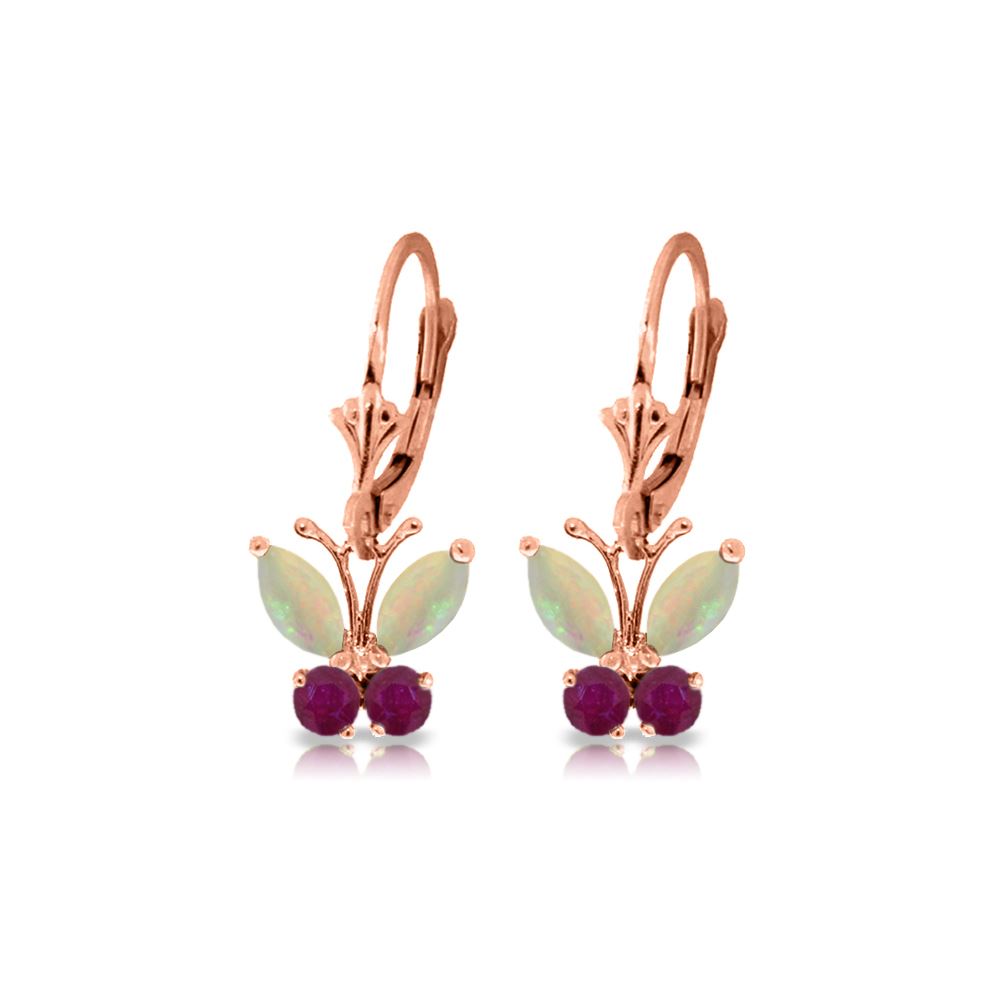 Genuine 14K Rose Gold 1.39 ctw Opal & Ruby Earrings
