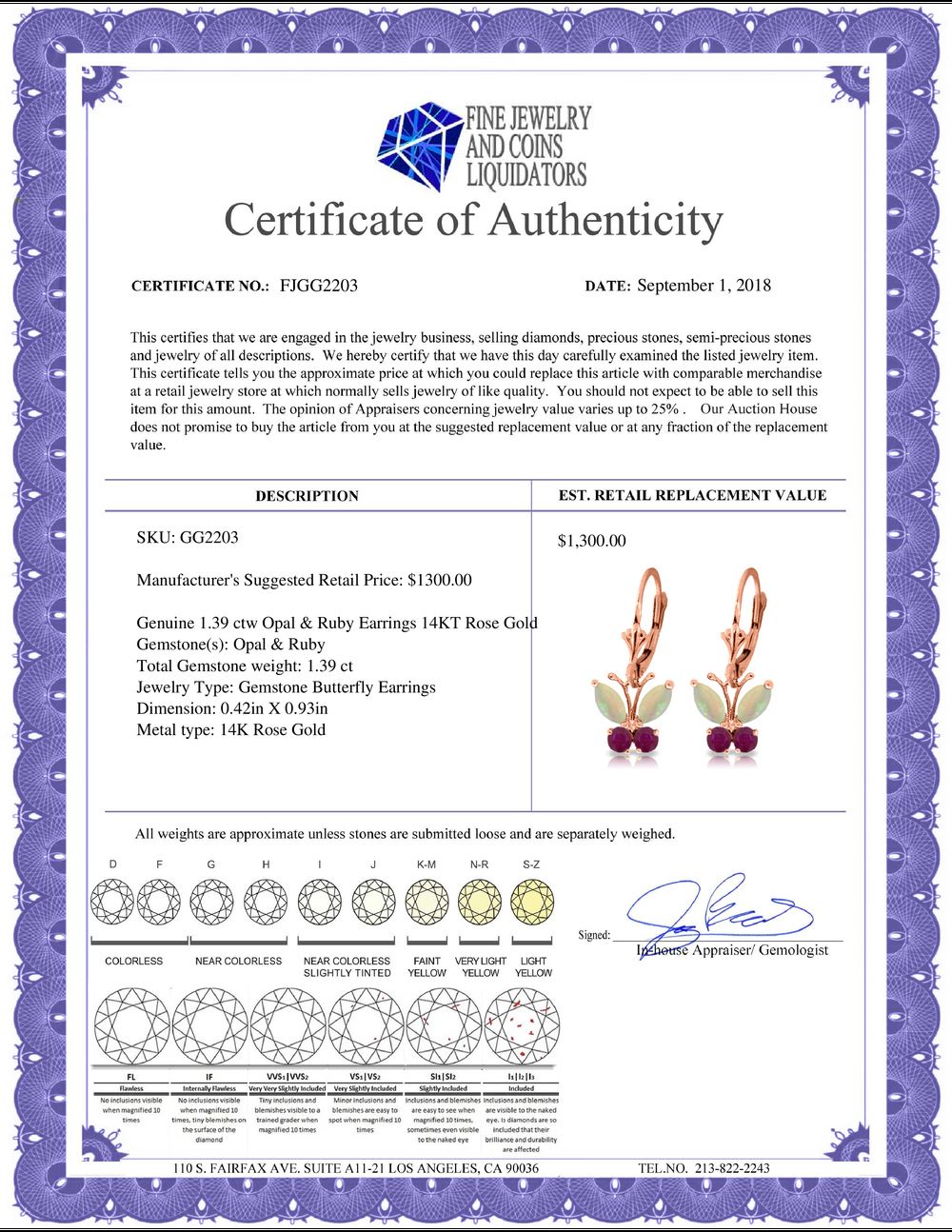 REF-41P4H - SKU: GG2203 ---- Genuine 1.39 ctw Opal & Ruby Earrings 14KT Rose Gold