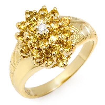 Diamond: 1 Round cut @ 0.14 ctw---- Clarity: SI-I---- Color: H-K----Gemstone: Natural Sapphire----Gemstone color: Yellow----Gemstone quality: Good-to-Very Good----Gemstone Cut & Weight: 20 Round cut @ 1.25 ctw----Metal Purity & Color : 10K Gold-Yellow----Gold weight: 4.20 grams----Ring size (US): 6.25----Dimension: Approx. 9/16 x 7/16----Consignor: World Jewelry Outlet----Delivery: Within 10 business days