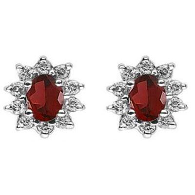 Total CTW: 1.4 ctw ; Mainstone: Garnet ; Style: Flower-Oval ; Metal Purity: 14k: Metal: Yellow or White Gold ; Weight(g): 1.9 ; Diamond Cut: 20 ROUNDCUT ; Diamond CTW 1: 0.3 ; Diamond Clarity : SI1/SI2 ; Diamond Color: G-H ; Gemstone Count: 2 OVA ; MSRP: $1099