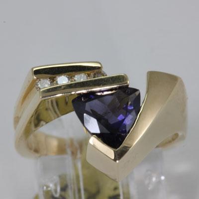 Main Stone: Iolite ; Diamond CTW: 0.15 ; Gemsonte CTW: 1.25 : Main Stone Treatment: Not Enhanced ; Exact Total Weight: 1.4 ; Metal: Yellow Gold ; Ring Size: 7 ; Main Stone Color: Blue ; Metal Purity: 14K (Soild, Unplated) ; Condition: New