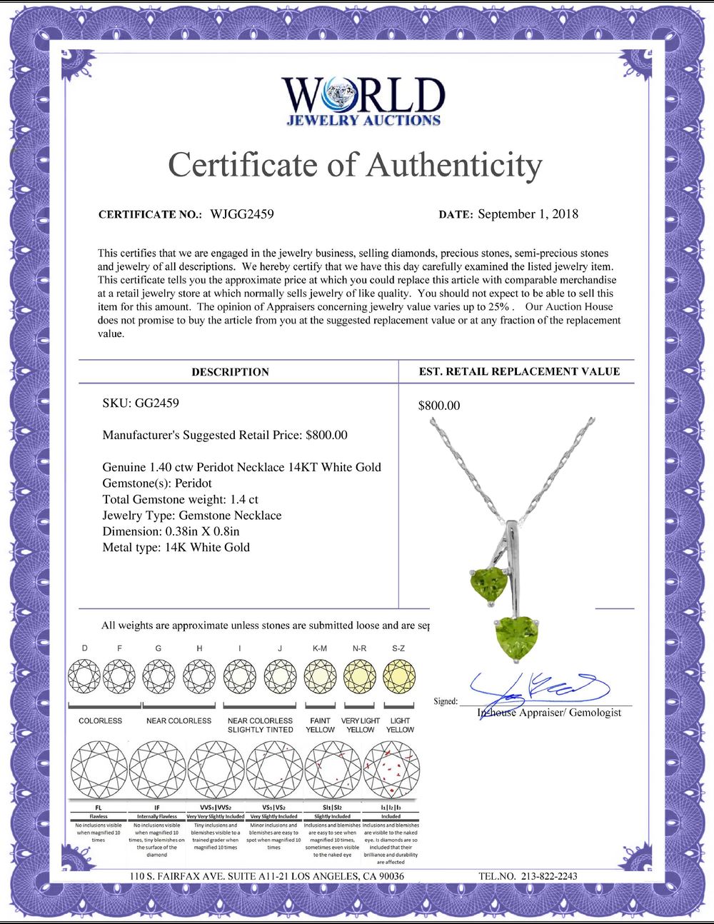 REF-23N8R - SKU: GG2459 ---- Genuine 1.40 ctw Peridot Necklace 14KT Rose Gold