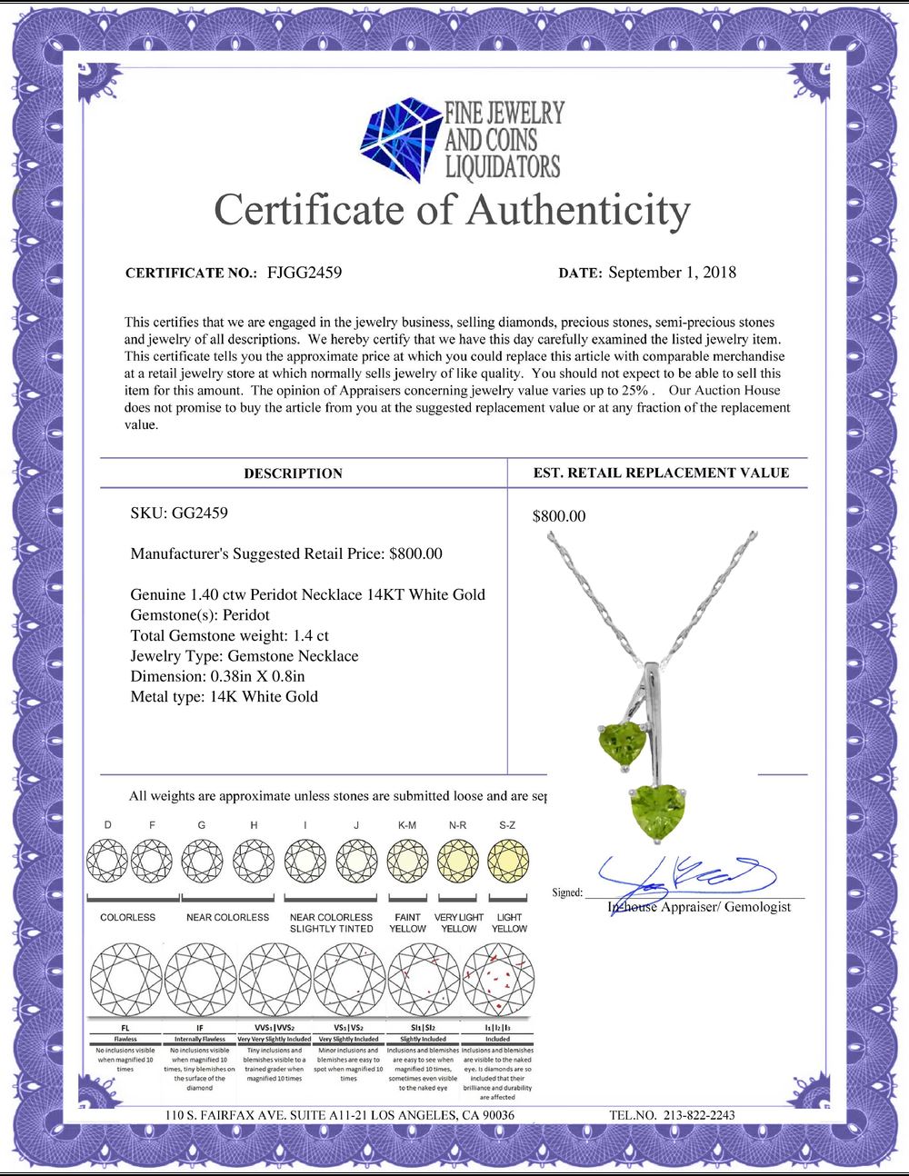 REF-23N8R - SKU: GG2459 ---- Genuine 1.40 ctw Peridot Necklace 14KT Rose Gold
