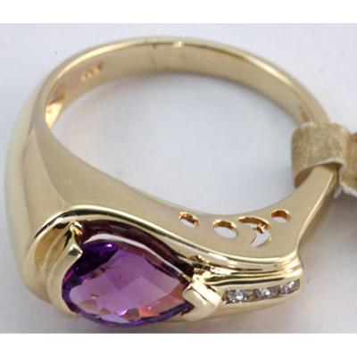 Gemstone: Amethyst ; Diamond Count 1: 3RD ; Diamond Weight: 0.04 ; Gemstone Color: Purple ; Gemstone Count: 1 Pear ; Gemstone Weight: 1.39 ; Dimension: 8X6MM ; Metal Purity: 14KT ; Metal: Gold-Yellow ; Ring Size: 7