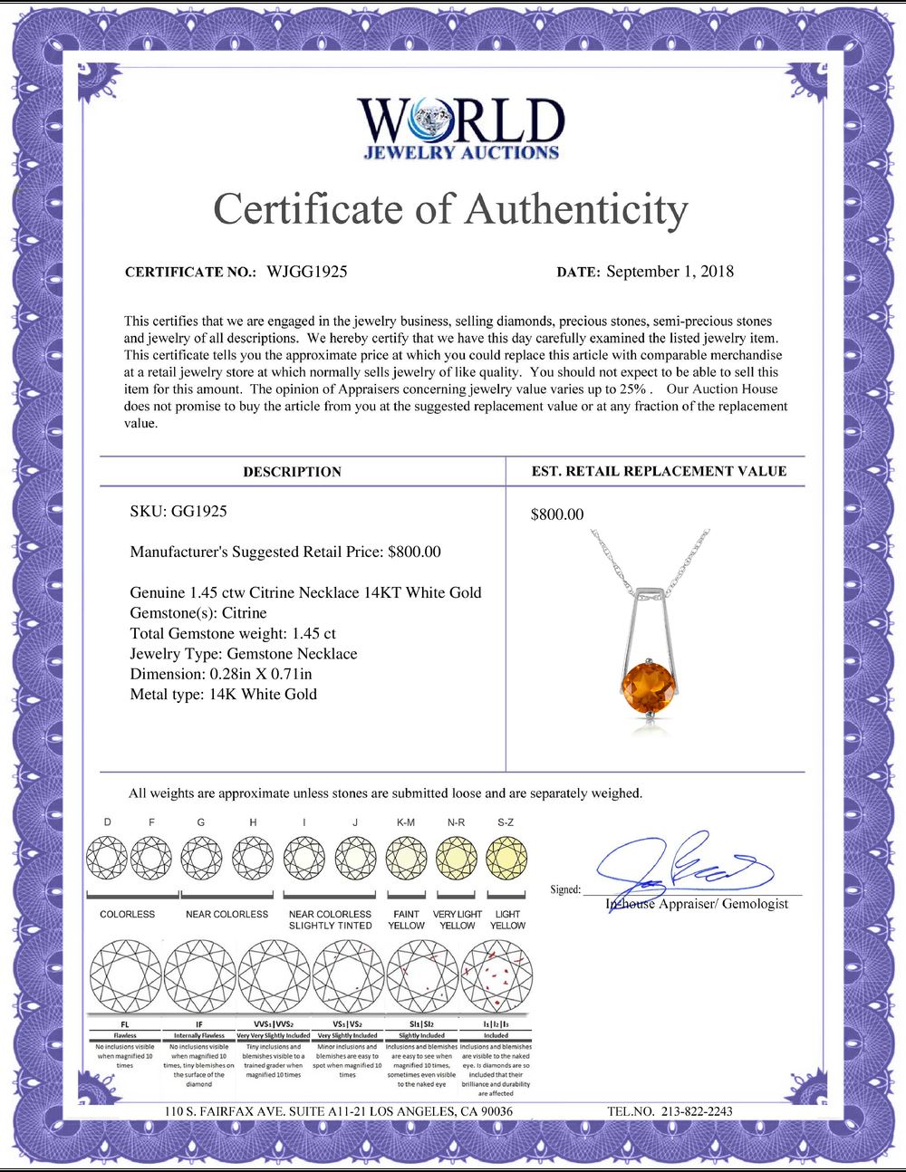 REF-23K8V - SKU: GG1925 ---- Genuine 1.45 ctw Citrine Necklace 14KT Rose Gold