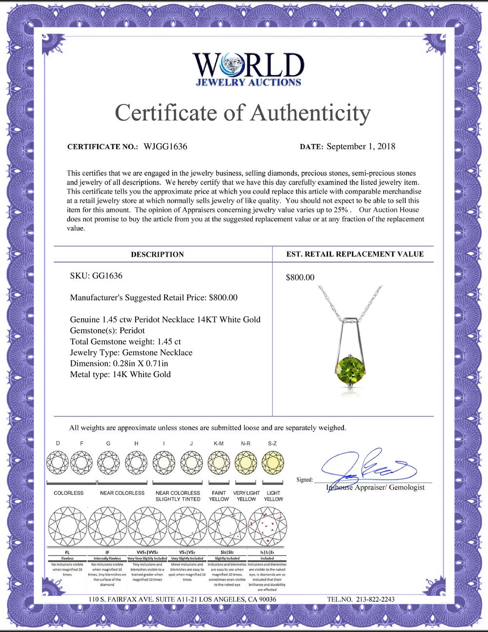 REF-23R8P - SKU: GG1636 ---- Genuine 1.45 ctw Peridot Necklace 14KT White Gold